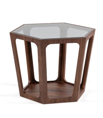 Table d’appoint hexagonale en bois de noyer