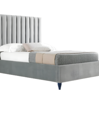 Lit en velours avec tête de lit à panneaux
