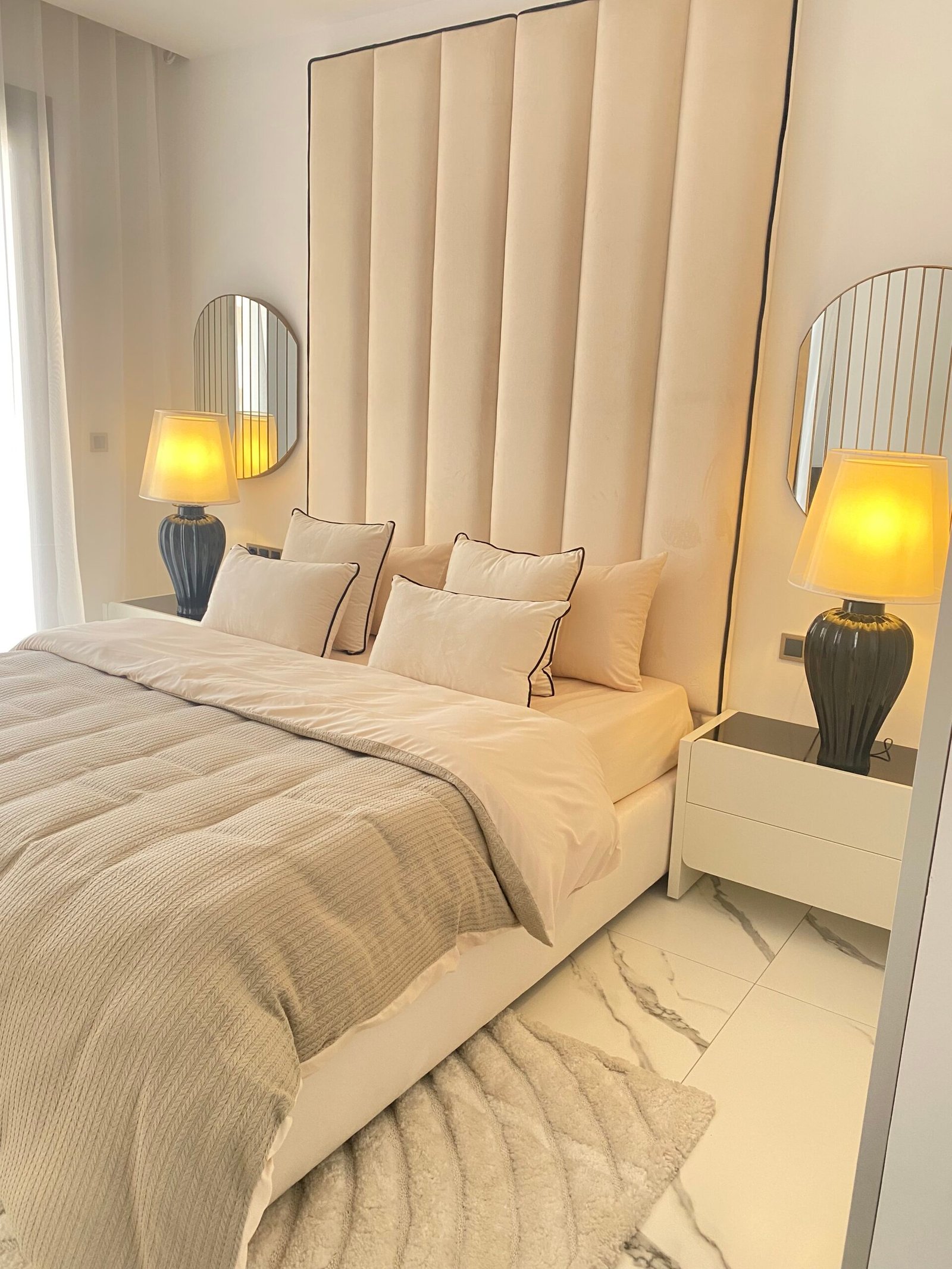 Les villas offrent un terrain de jeu idéal pour exprimer pleinement la créativité. Nous concevons des intérieurs qui allient grandeur et raffinement. Du salon spacieux à la chambre élégante, en passant par la salle à manger conviviale, chaque pièce est pensée pour mettre en valeur volumes, lumière et confort. Nous proposons des collections haut de gamme qui marient esthétique et durabilité, afin que votre villa devienne le reflet parfait de vos envies.