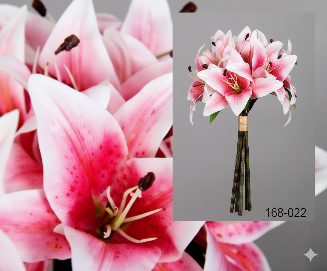 Ce bouquet de lys artificiels Natural Touch capture toute l’élégance et la fraîcheur des véritables Lilium roses, avec un réalisme saisissant au regard comme au toucher.