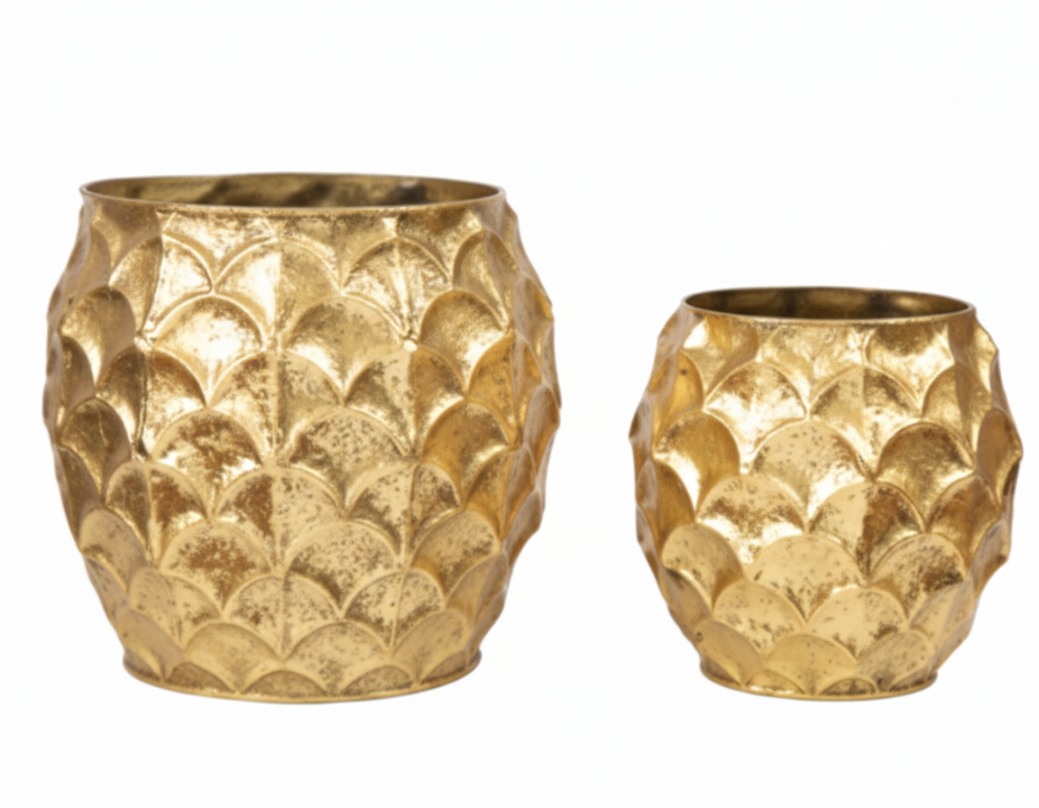 Ce cache-pot présente une esthétique luxueuse et texturée :