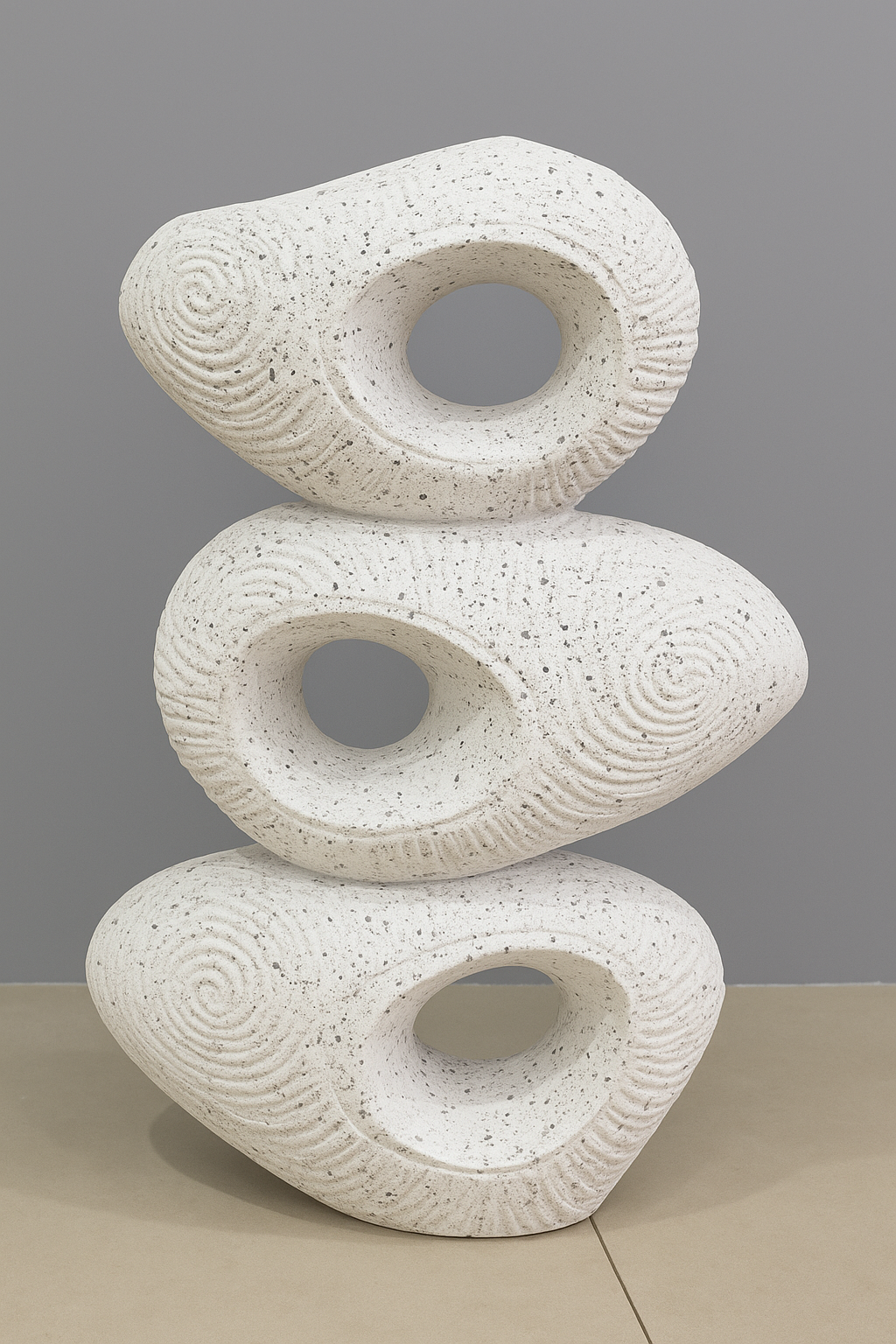 Matière : réalisé en pierre artificielle ou matériau composite, de couleur blanc cassé avec de petites taches grises, rappelant l’effet du granit ou du corail.