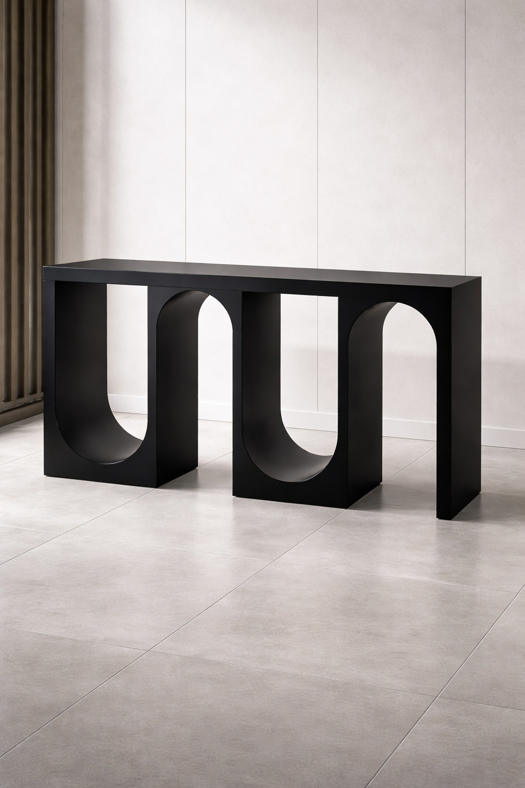 Cette console d’importation se distingue par son design contemporain sculptural, réalisée en inox finition cuivre qui lui confère une allure à la fois élégante et sophistiquée. Sa structure monobloc aux lignes épurées est sublimée par des arches arrondies intégrées dans le piètement, créant un jeu de formes moderne et harmonieux.