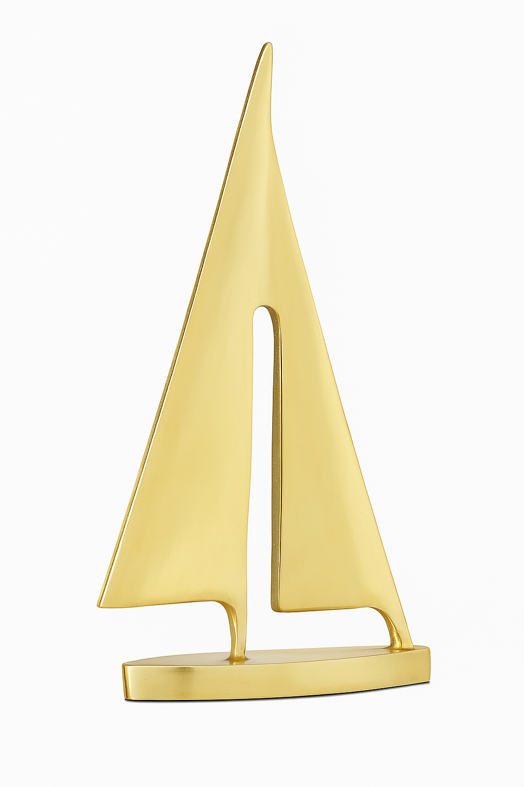 Élégante et moderne, cette décoration de table en forme de voilier séduit par son design épuré et son fini doré brillant.