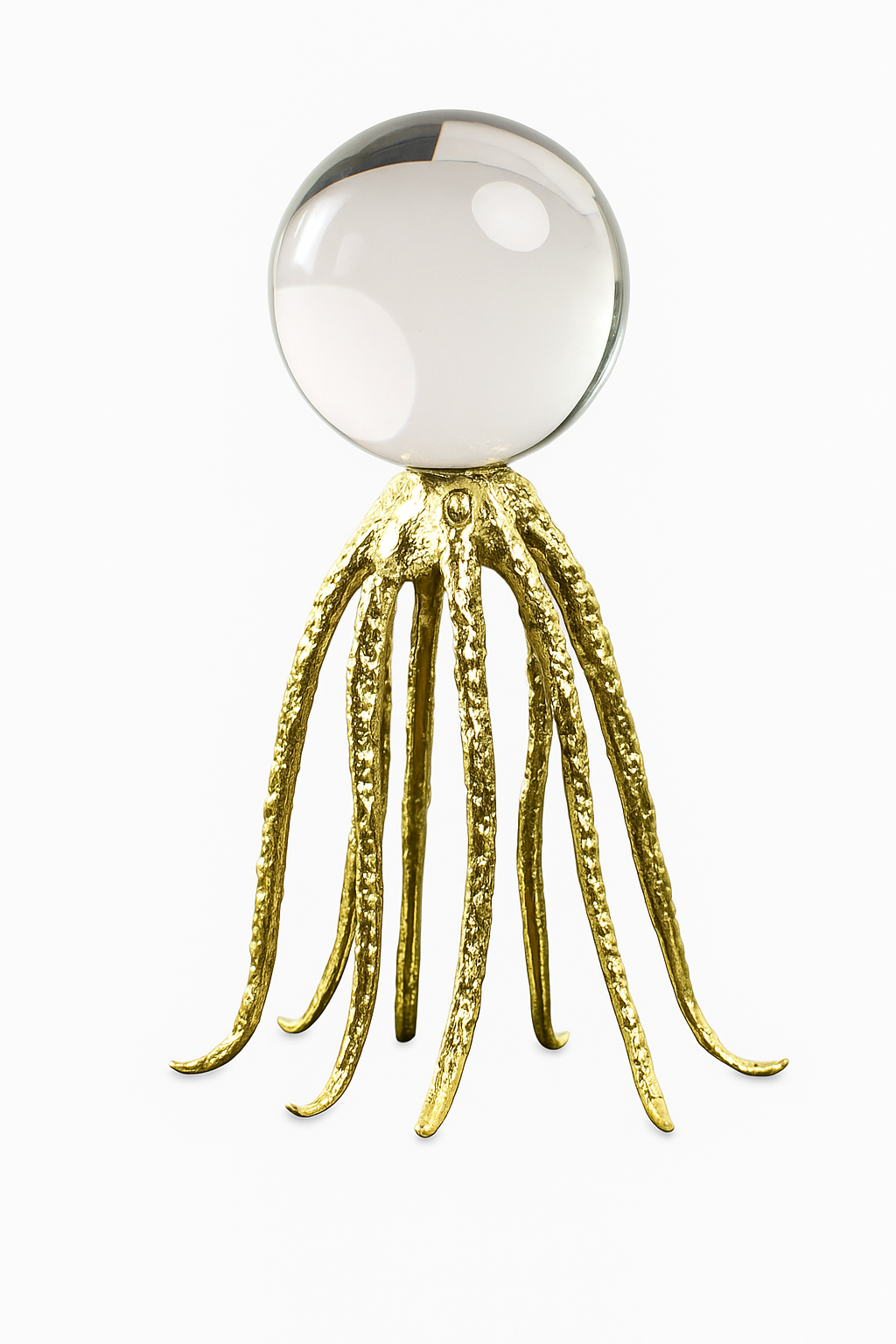 Structure : Sculpture détaillée en métal à la finition dorée (effet laiton vieilli). Chaque tentacule est finement travaillé, reproduisant l’aspect naturel de la peau de la pieuvre.
