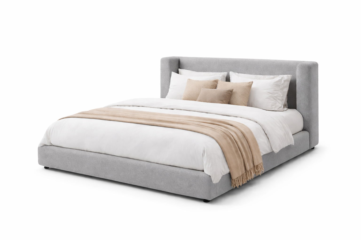 La tête de lit large et droite, au rembourrage généreux, assure un confort optimal et met en valeur des lignes sobres et contemporaines. Le cadre bas et enveloppant renforce la stabilité du lit et lui donne une allure chic et harmonieuse.
