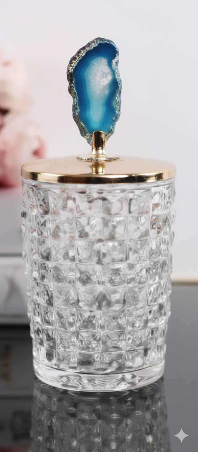 Flacon décoratif en verre taillé et agate bleue gm