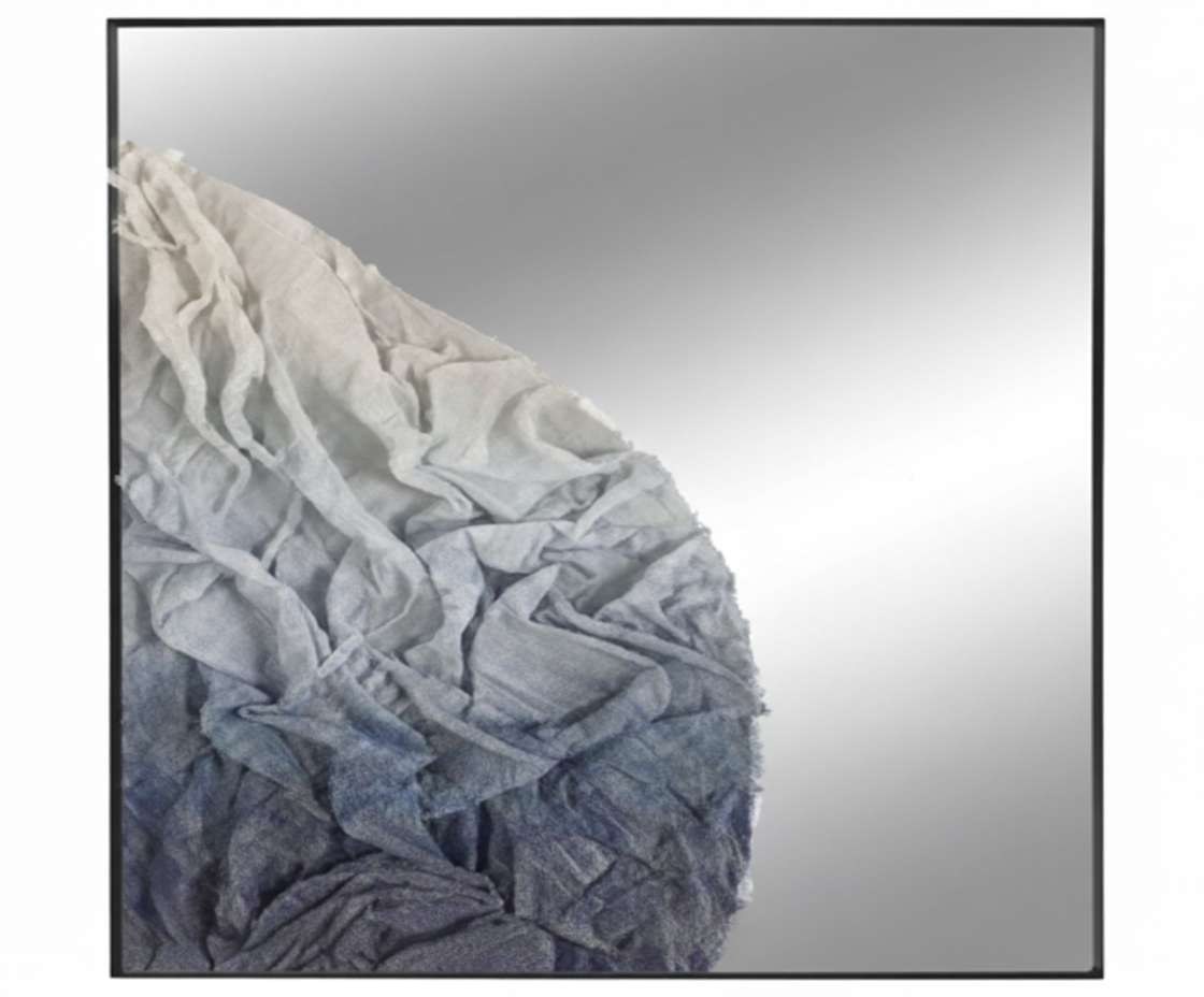 Une grande partie de sa surface est recouverte par un tissu froissé, créant un effet visuel particulier. Le tissu présente un dégradé de couleurs :