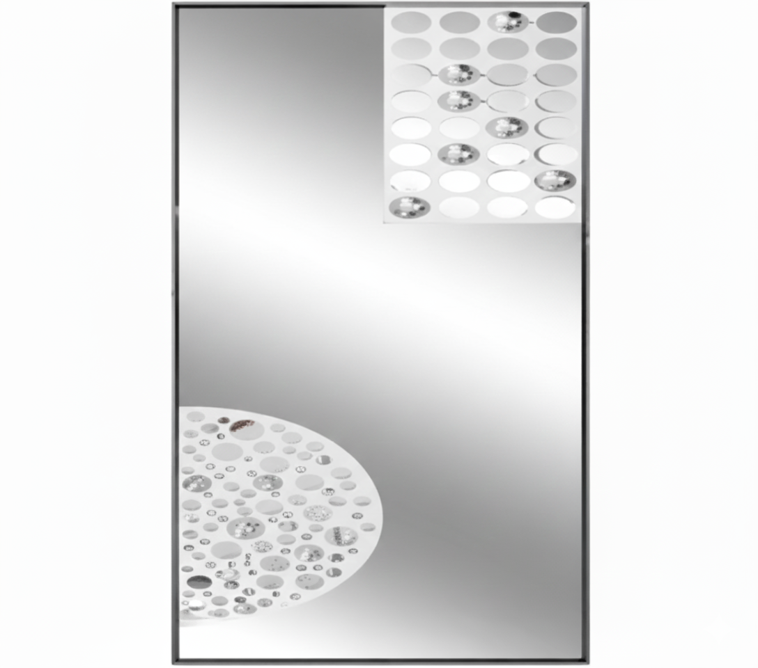 La glace n’est pas totalement lisse : elle est partiellement décorée de motifs circulaires qui apportent une touche graphique et moderne :