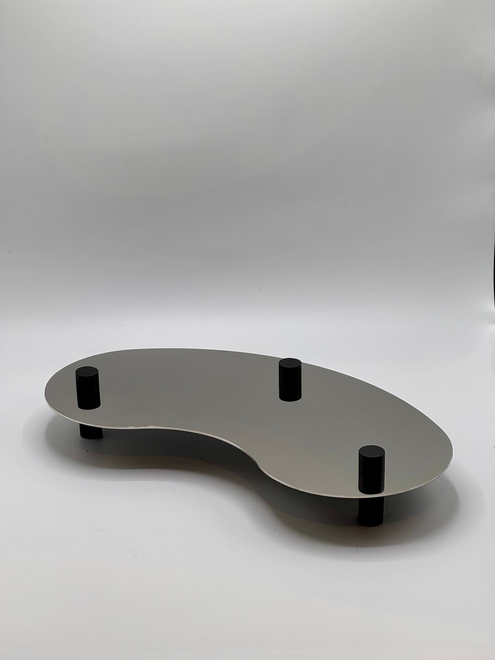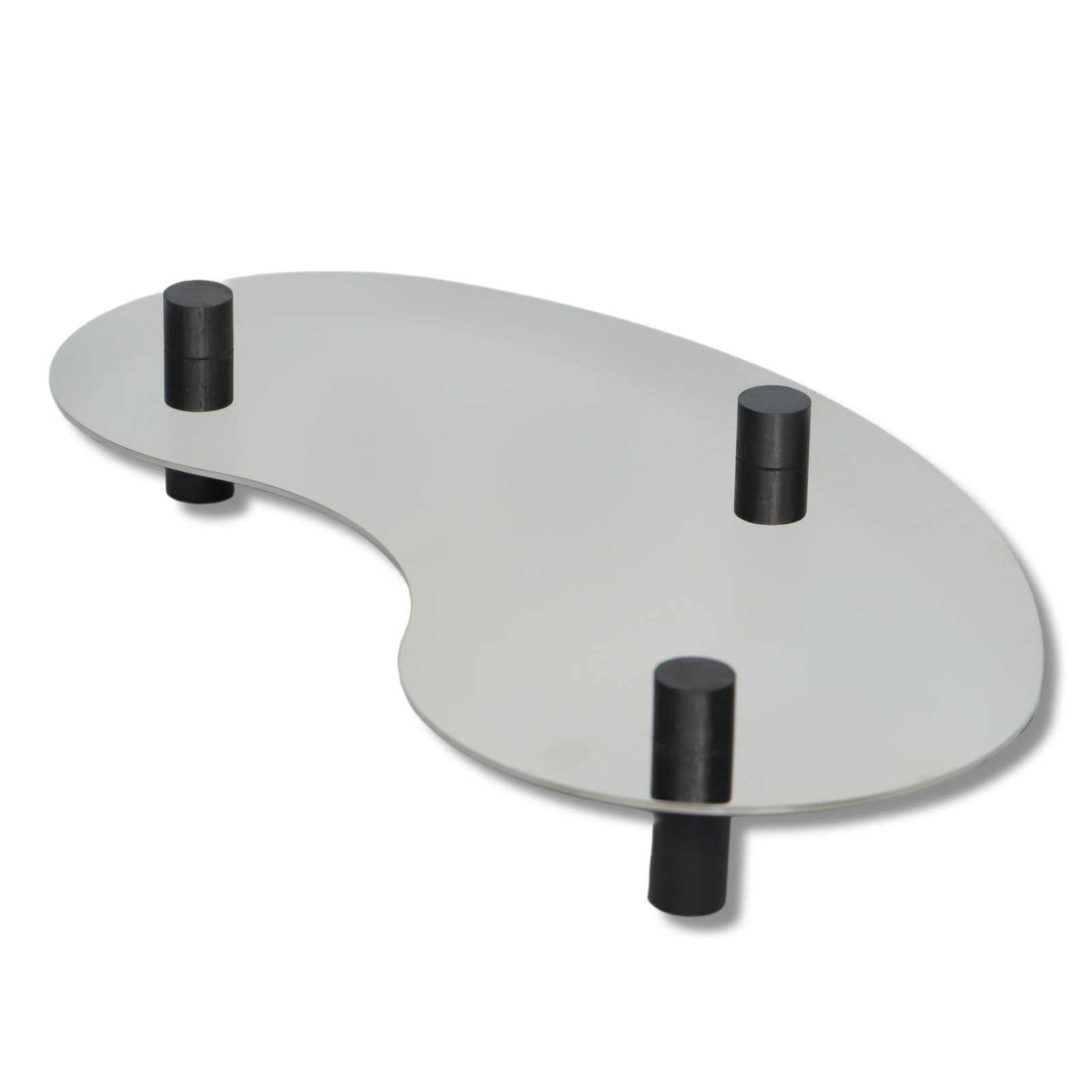 Plateau design organique PM – Surface miroir et pieds cylindriques noirs