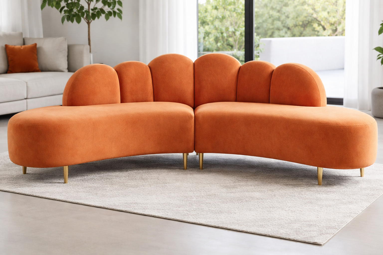 Ce salon d’importation se distingue par un design moderne aux lignes arrondies, alliant élégance contemporaine et confort supérieur. Sa forme d’angle légèrement courbée apporte une touche architecturale raffinée, idéale pour structurer un espace salon tout en favorisant la convivialité.