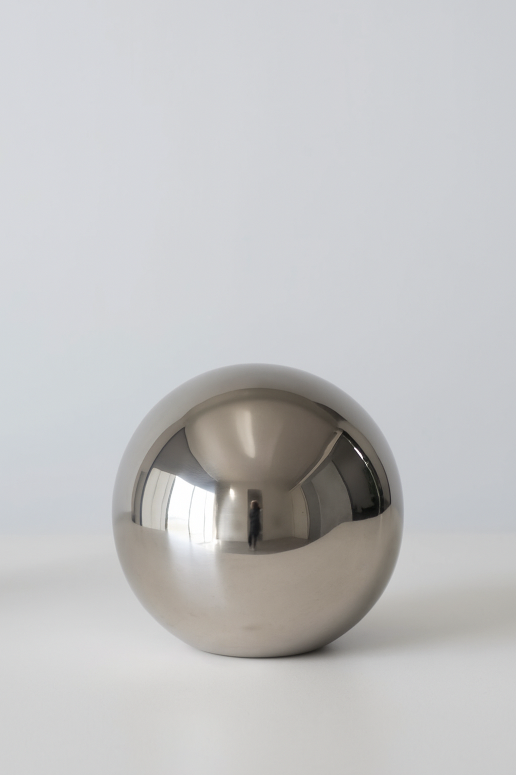 • Description : Grande boule en métal chromé à la surface parfaitement lisse et réfléchissante.