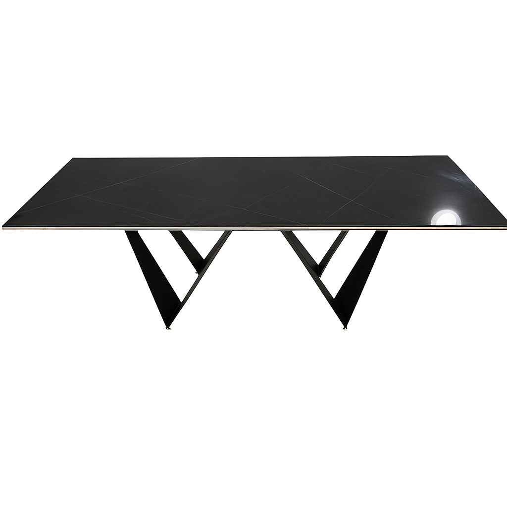 Cette table à manger est conçue avec un plateau en céramique effet marbre noir, à la surface lisse et brillante, très résistante aux rayures et à la chaleur. Les veines claires du motif marbré apportent une touche élégante et haut de gamme.