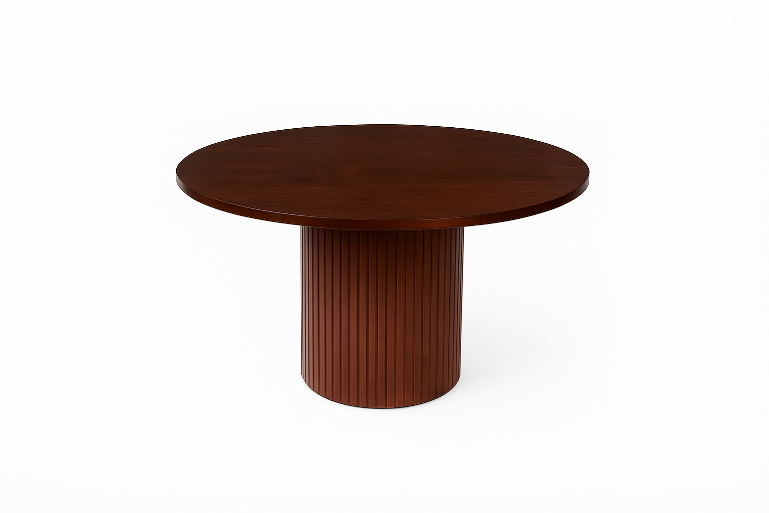 Son pied central cylindrique, composé de fines rainures verticales, apporte une touche architecturale et contemporaine à l’ensemble, tout en garantissant une parfaite stabilité.