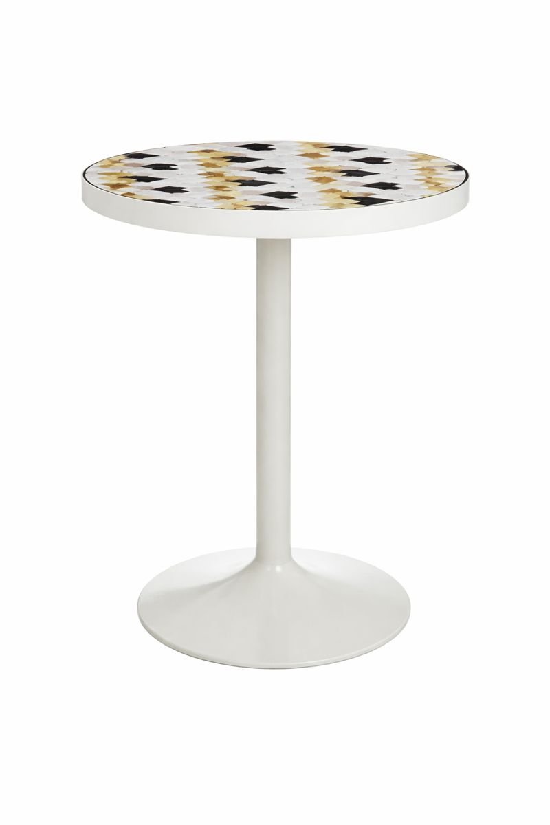 • Plateau : Rond, décoré d’un motif géométrique type mosaïque associant le blanc, le noir et des touches dorées, apportant une note élégante et contemporaine.