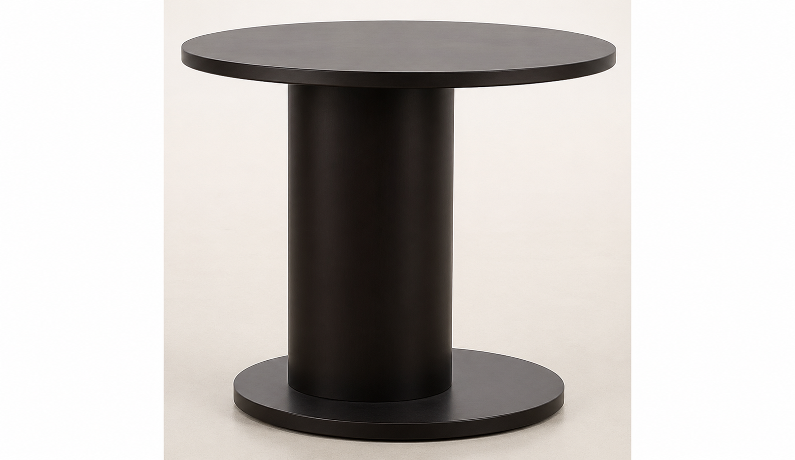 La base circulaire reprend la même conception, assurant une bonne stabilité. L’ensemble est recouvert d’une finition noire (mate ou satinée), qui donne un aspect élégant et contemporain.