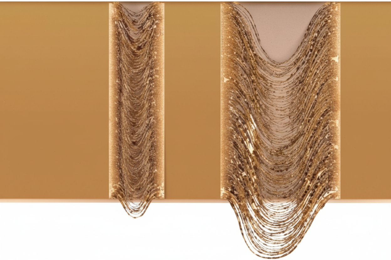 À gauche, une large zone lisse et uniforme, d’un doré mat.