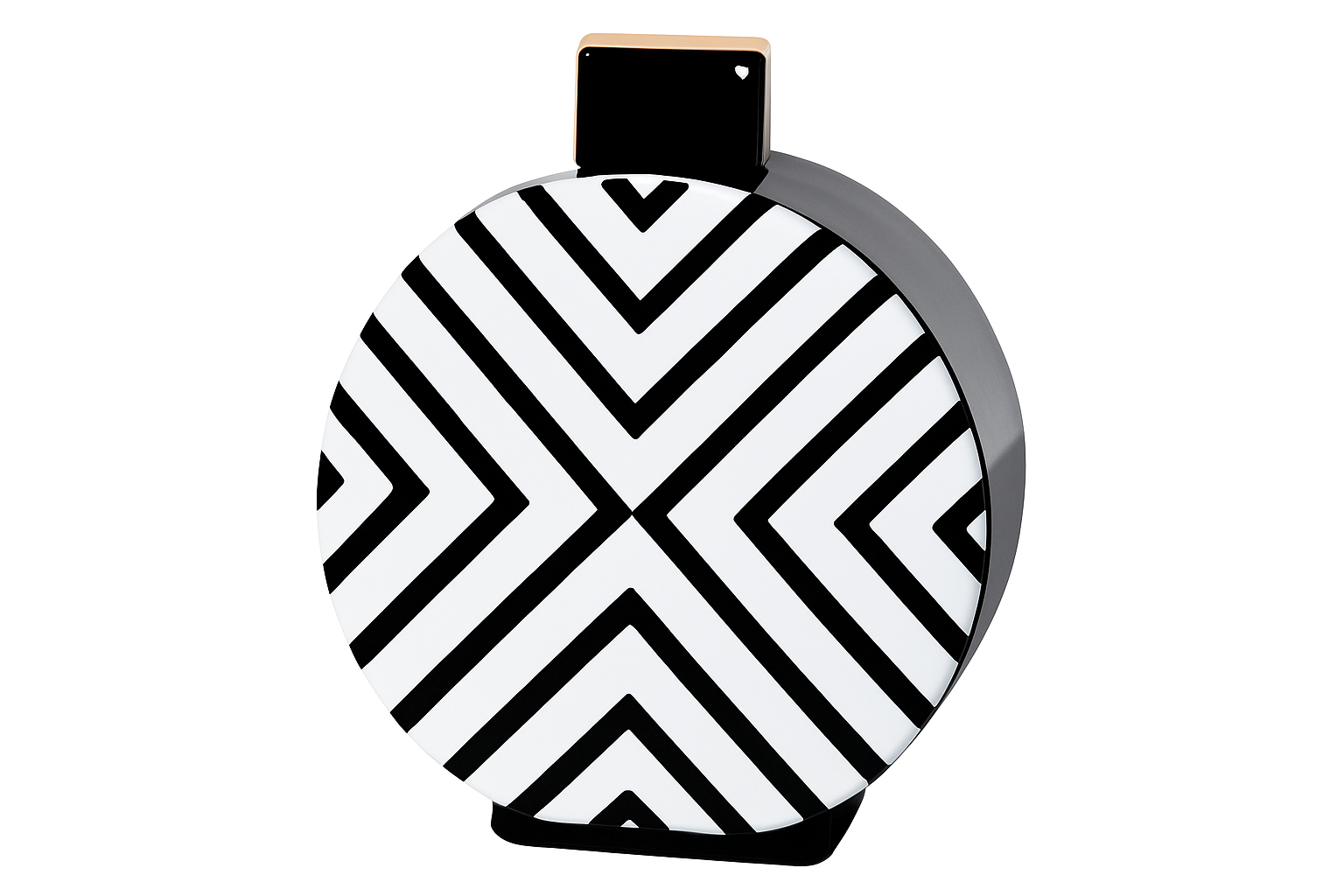 Le décor à chevrons noirs sur fond blanc crée un contraste saisissant qui attire le regard.