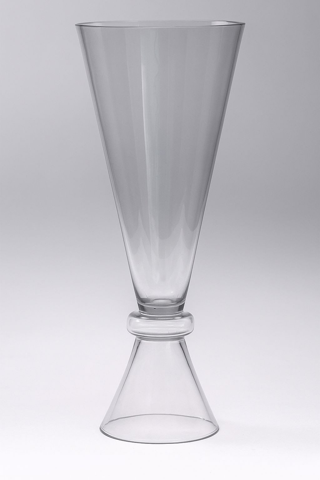 Ce vase en cristal se distingue par son design contemporain et raffiné. Sa silhouette élancée adopte une forme conique qui s’ouvre vers le haut, reposant sur une base inversée reliée par un élégant anneau de cristal. La transparence parfaite du cristal, associée à ses reflets lumineux, lui confère une allure luxueuse et sophistiquée.