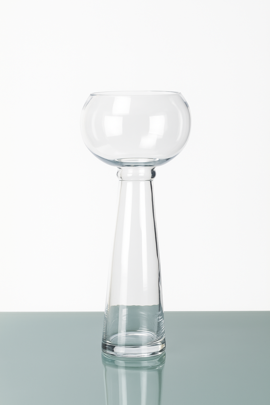 Ce grand vase en verre transparent présente une silhouette élancée et moderne. Sa base cylindrique s’élargit légèrement vers le bas, assurant une bonne stabilité, tandis que sa partie supérieure se compose d’un large bol arrondi au col resserré. Sa transparence et sa finition lisse lui confèrent une allure élégante, idéale pour accueillir des compositions florales ou servir d’élément décoratif épuré.