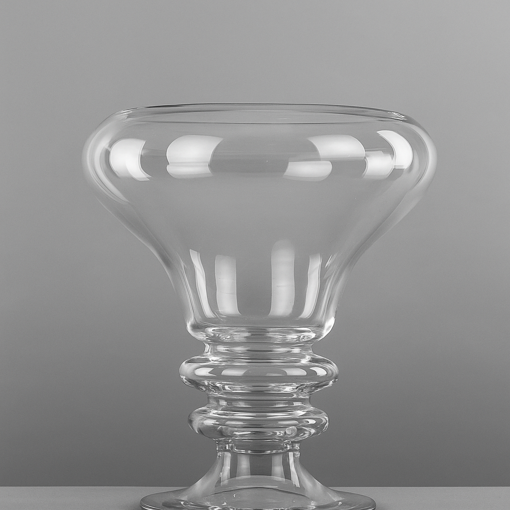 Sa base travaillée avec des anneaux décoratifs apporte du relief et un charme classique, tandis que le pied large et légèrement évasé assure une excellente stabilité. Le verre, d’une grande clarté, reflète élégamment la lumière et met en valeur la finesse de ses courbes.